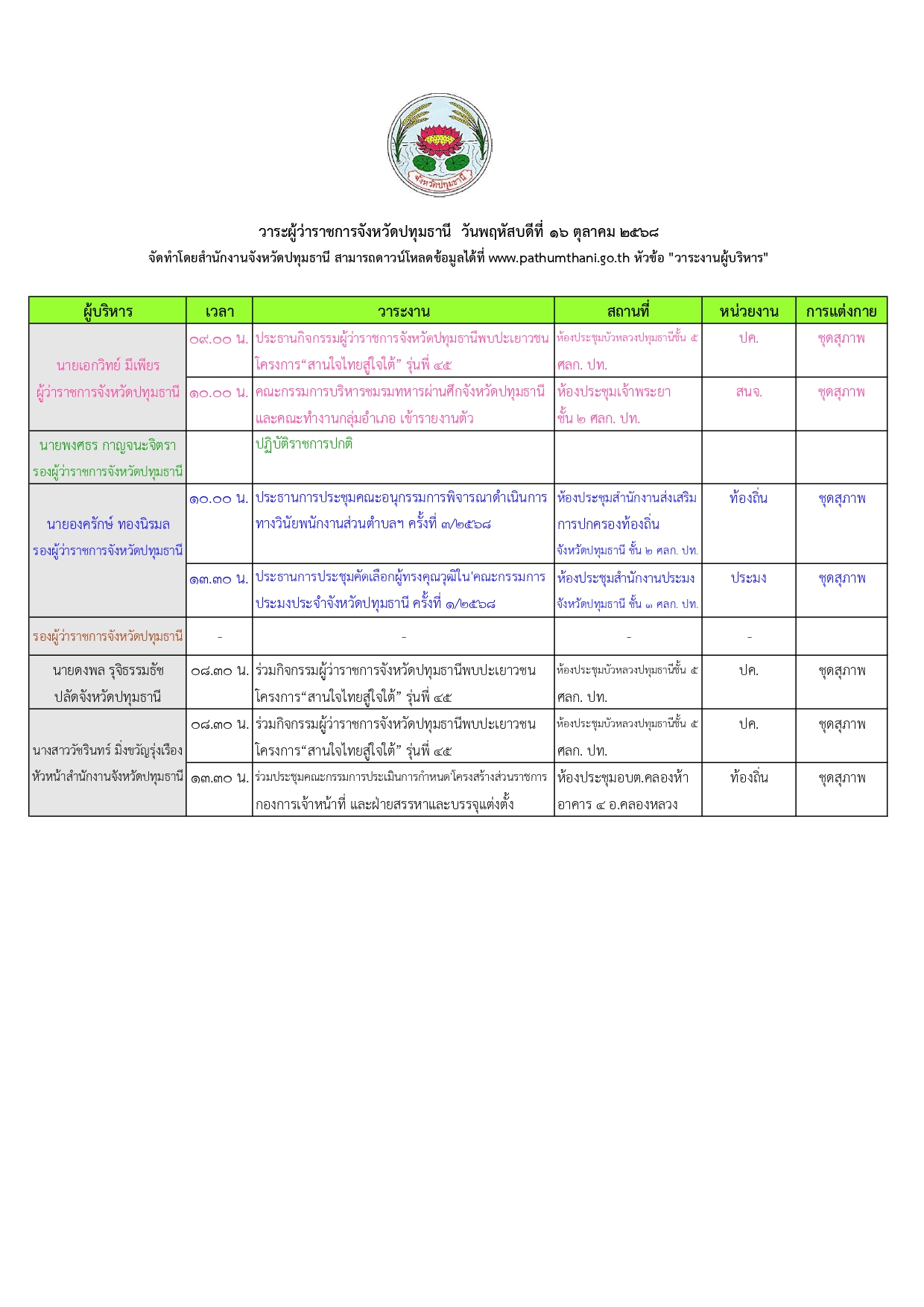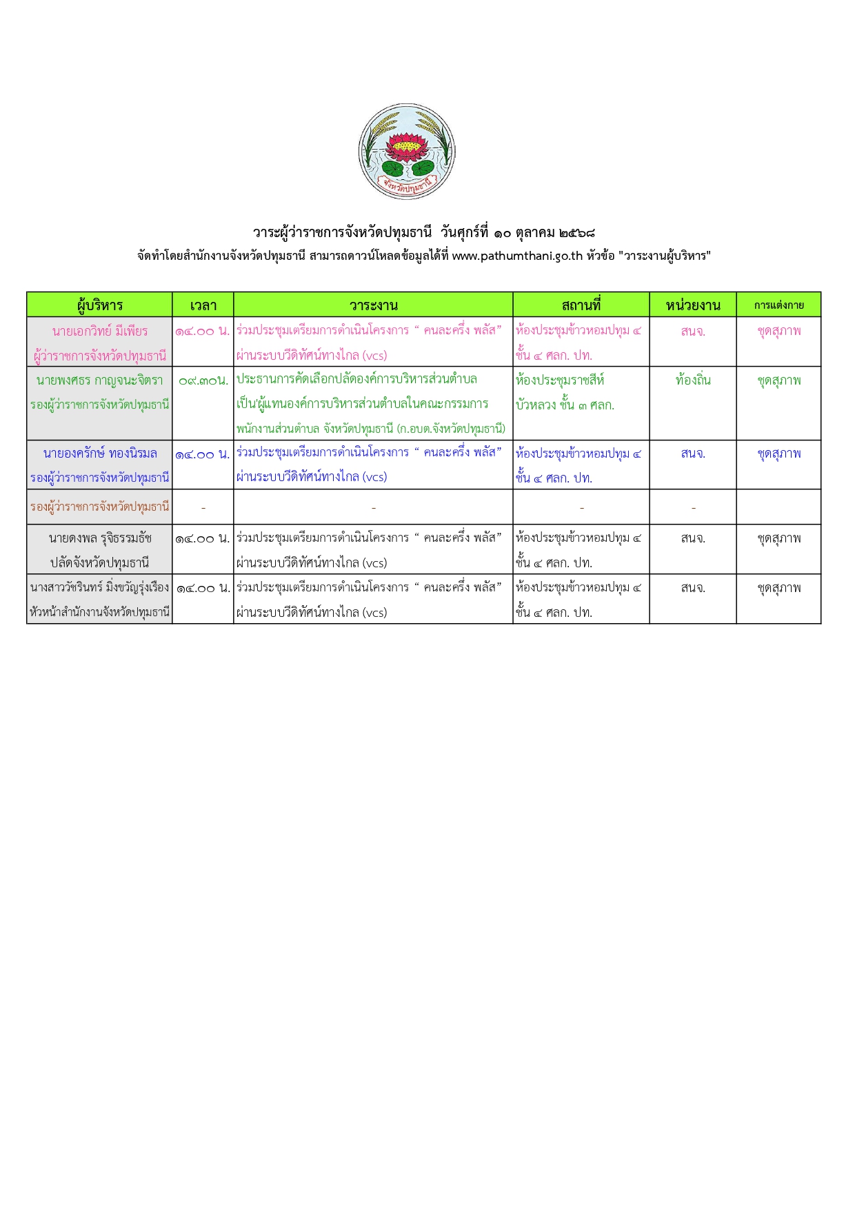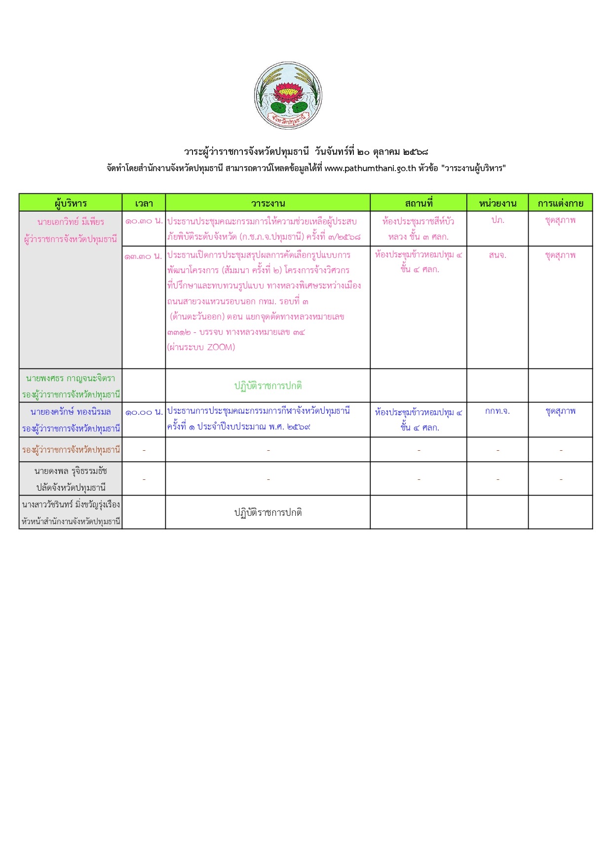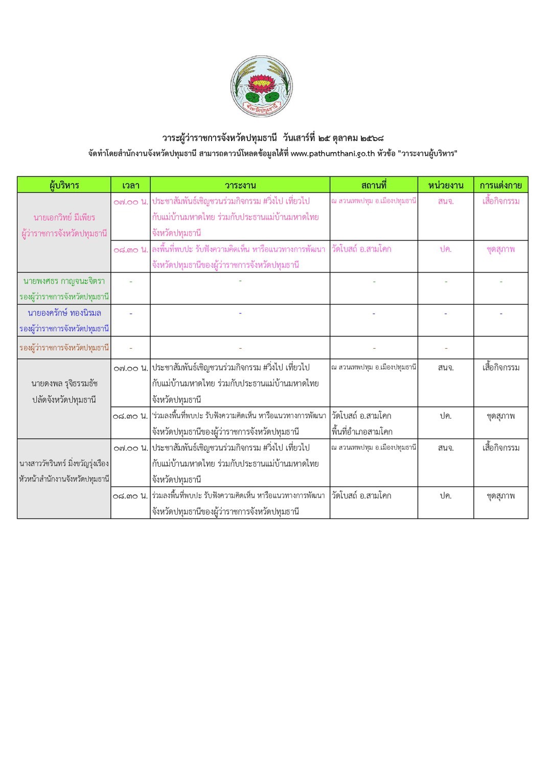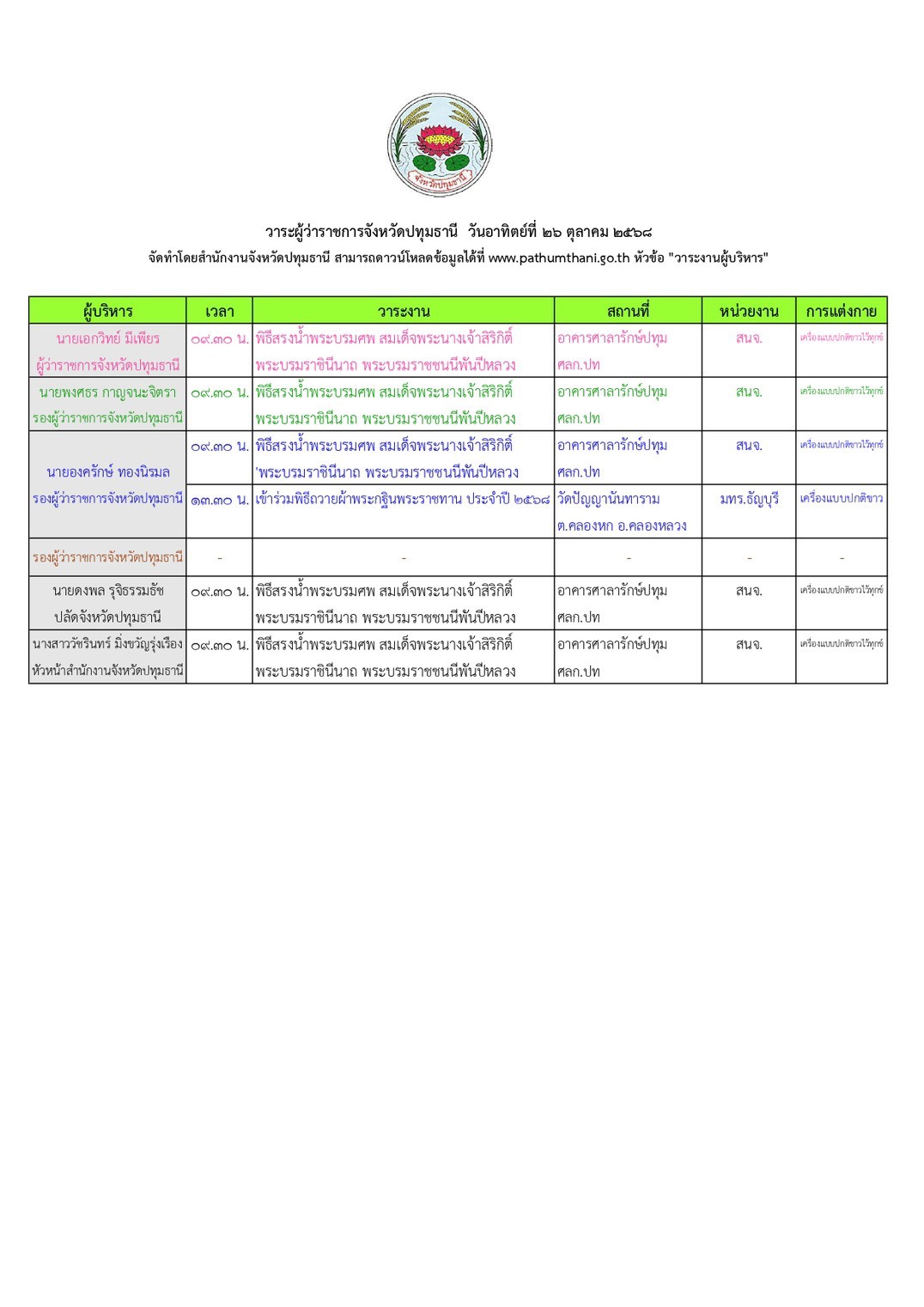 วาระงานผู้บริหารจังหวัดปทุมธานี