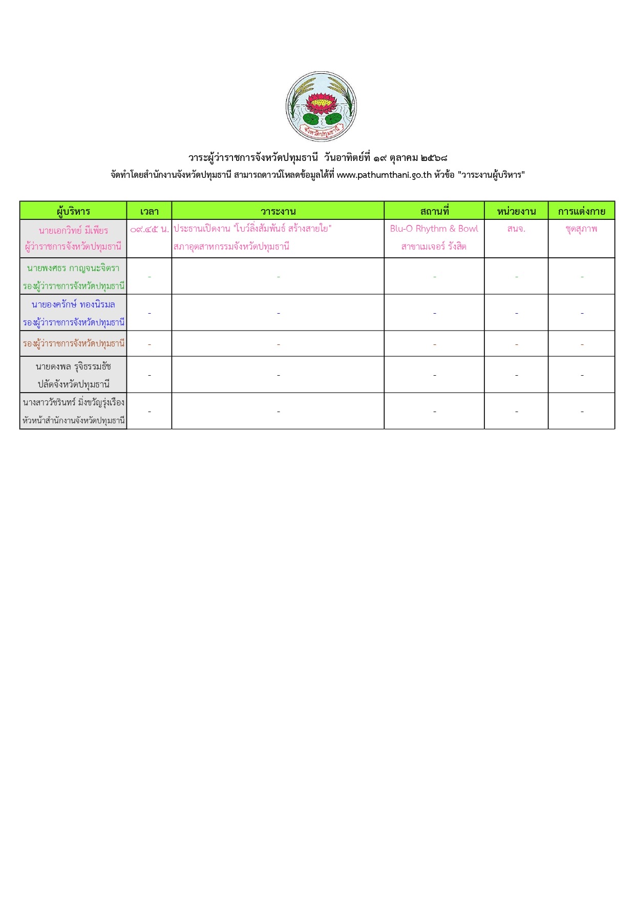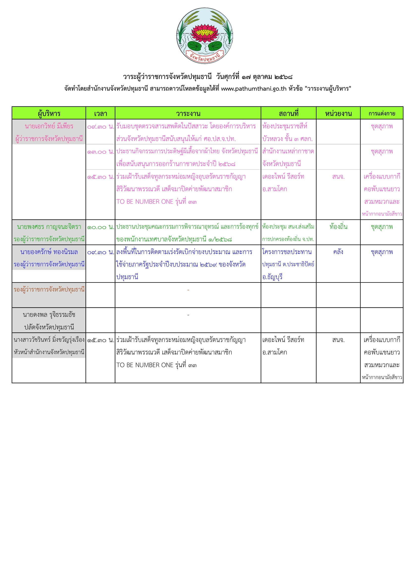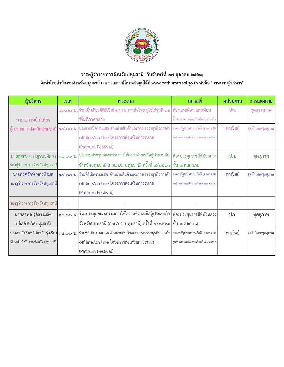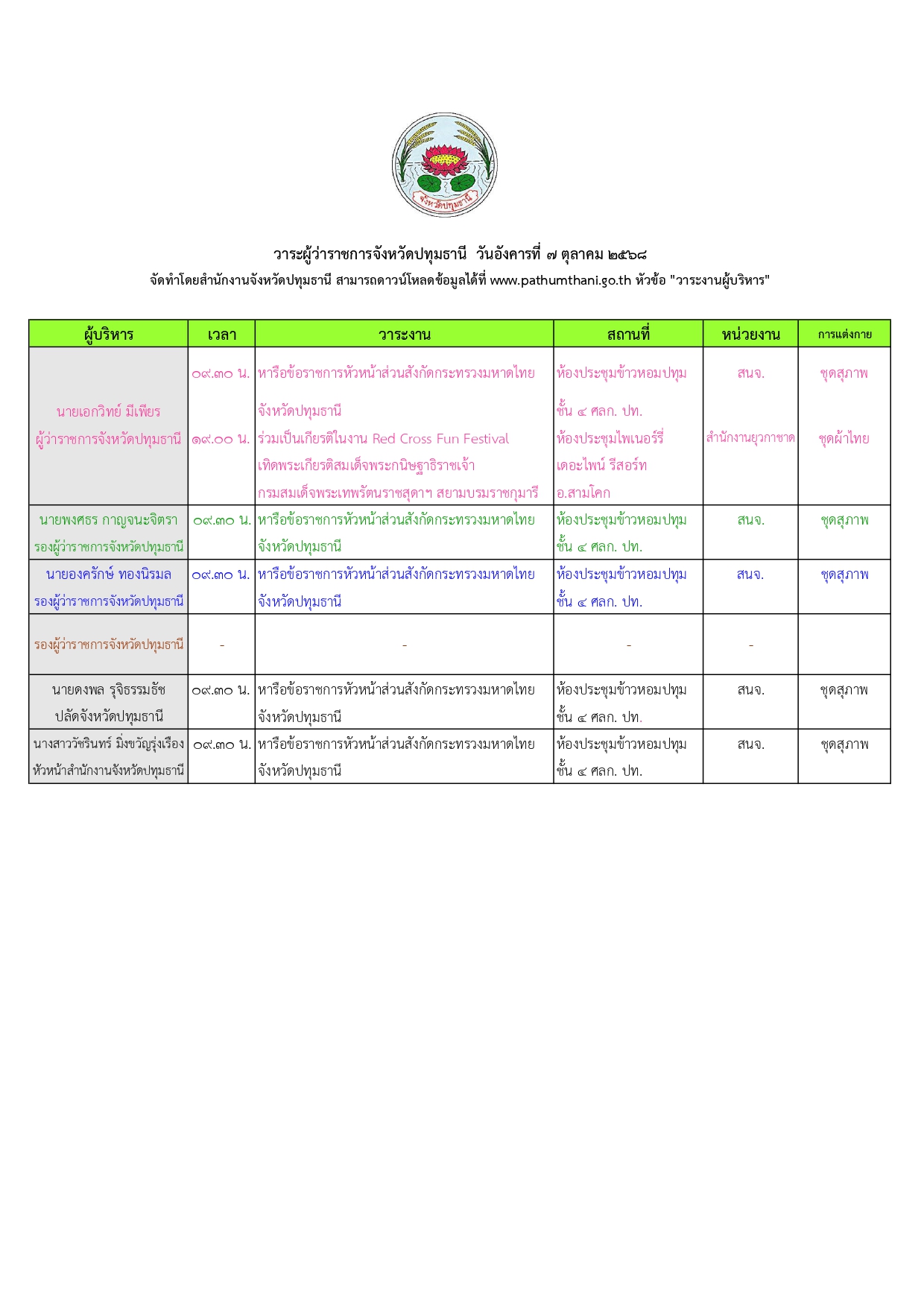 วาระงานผู้บริหารจังหวัดปทุมธานี