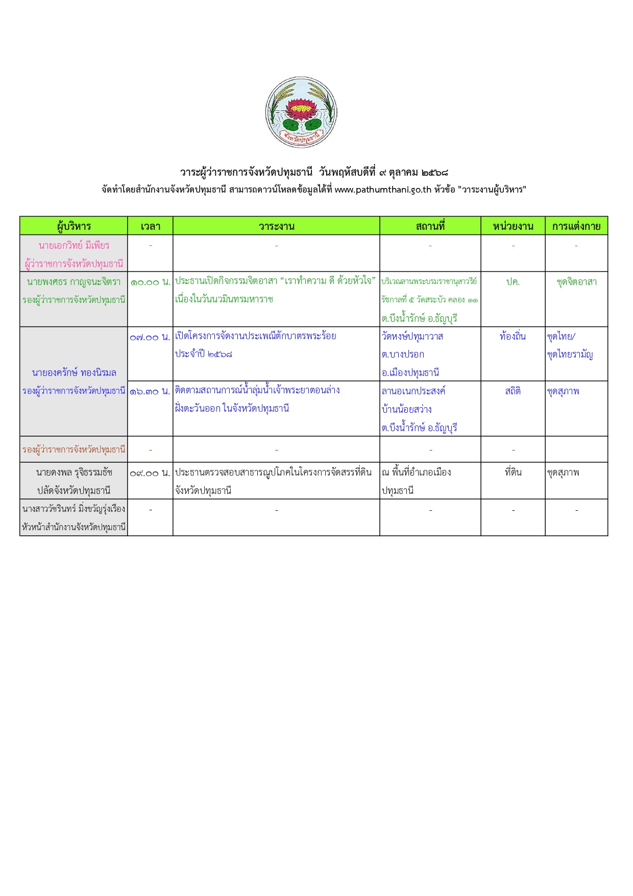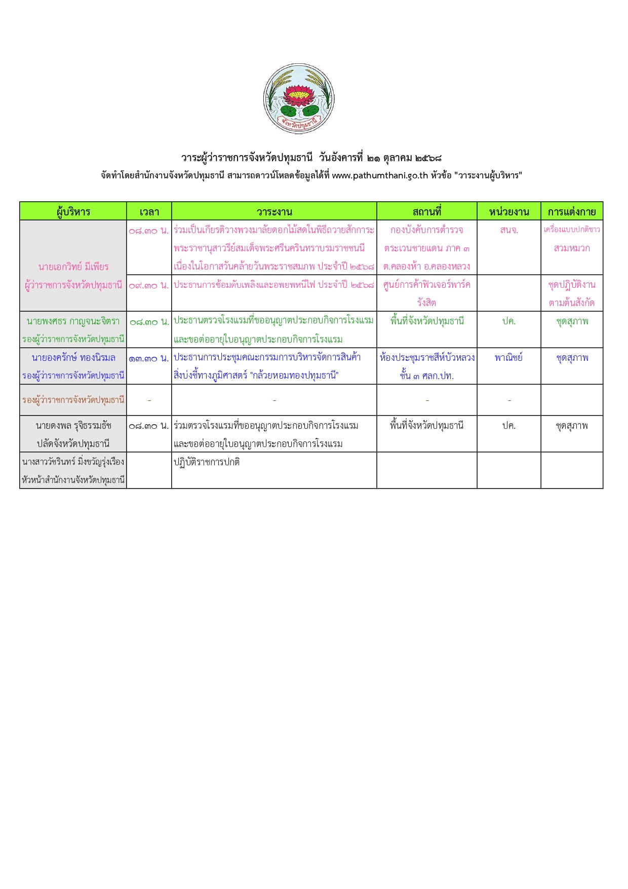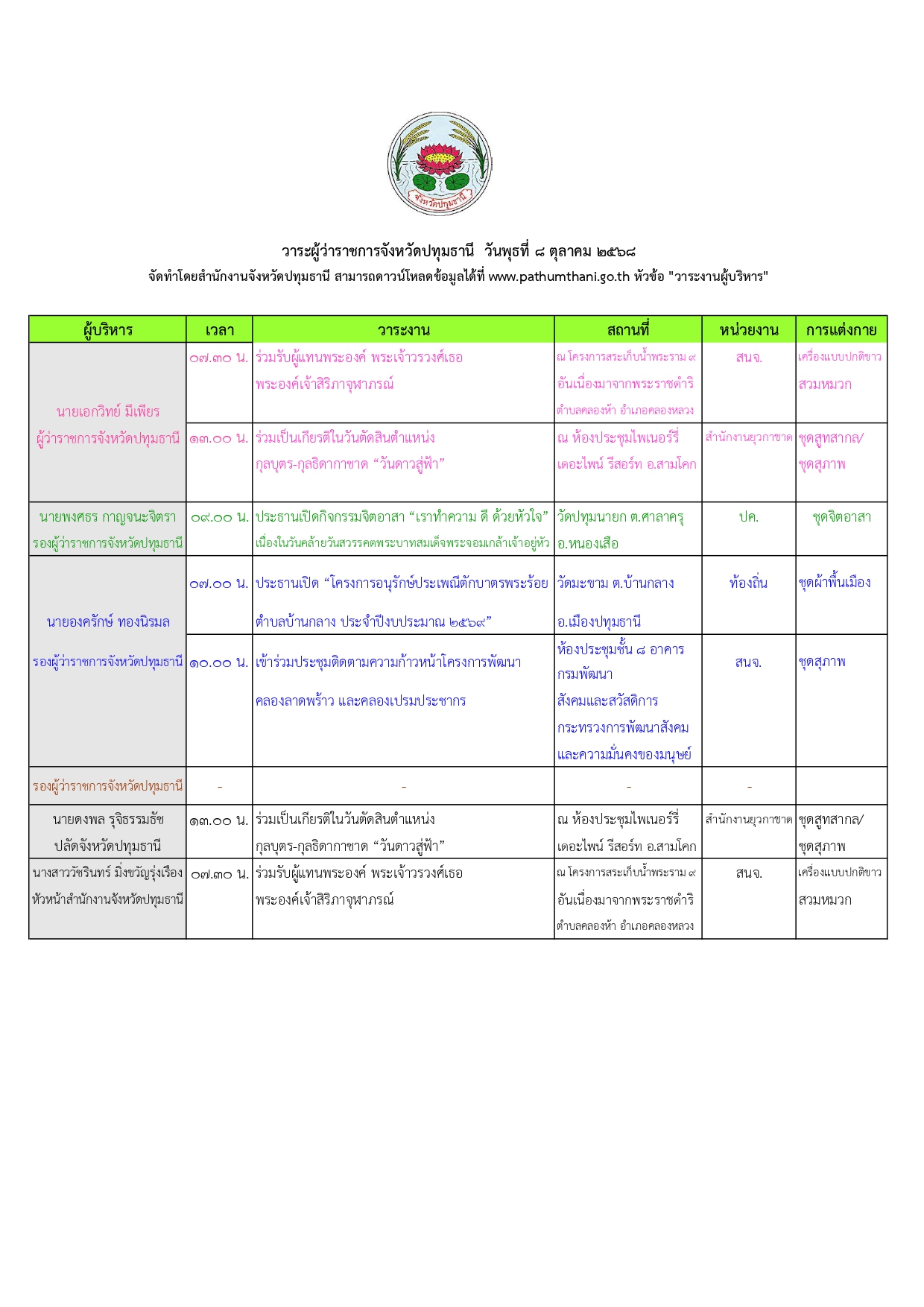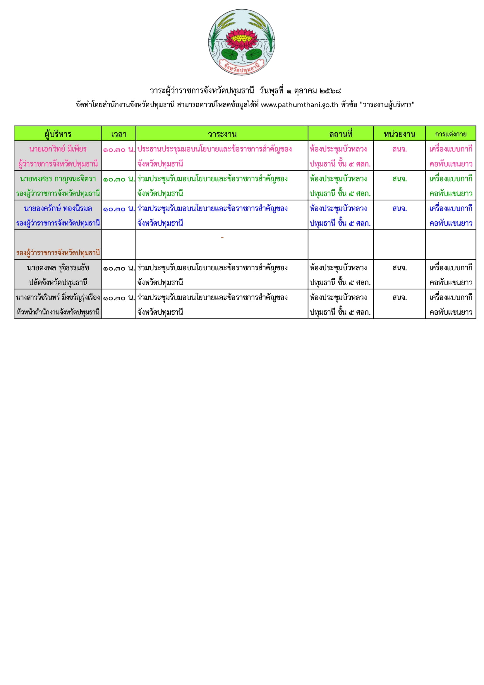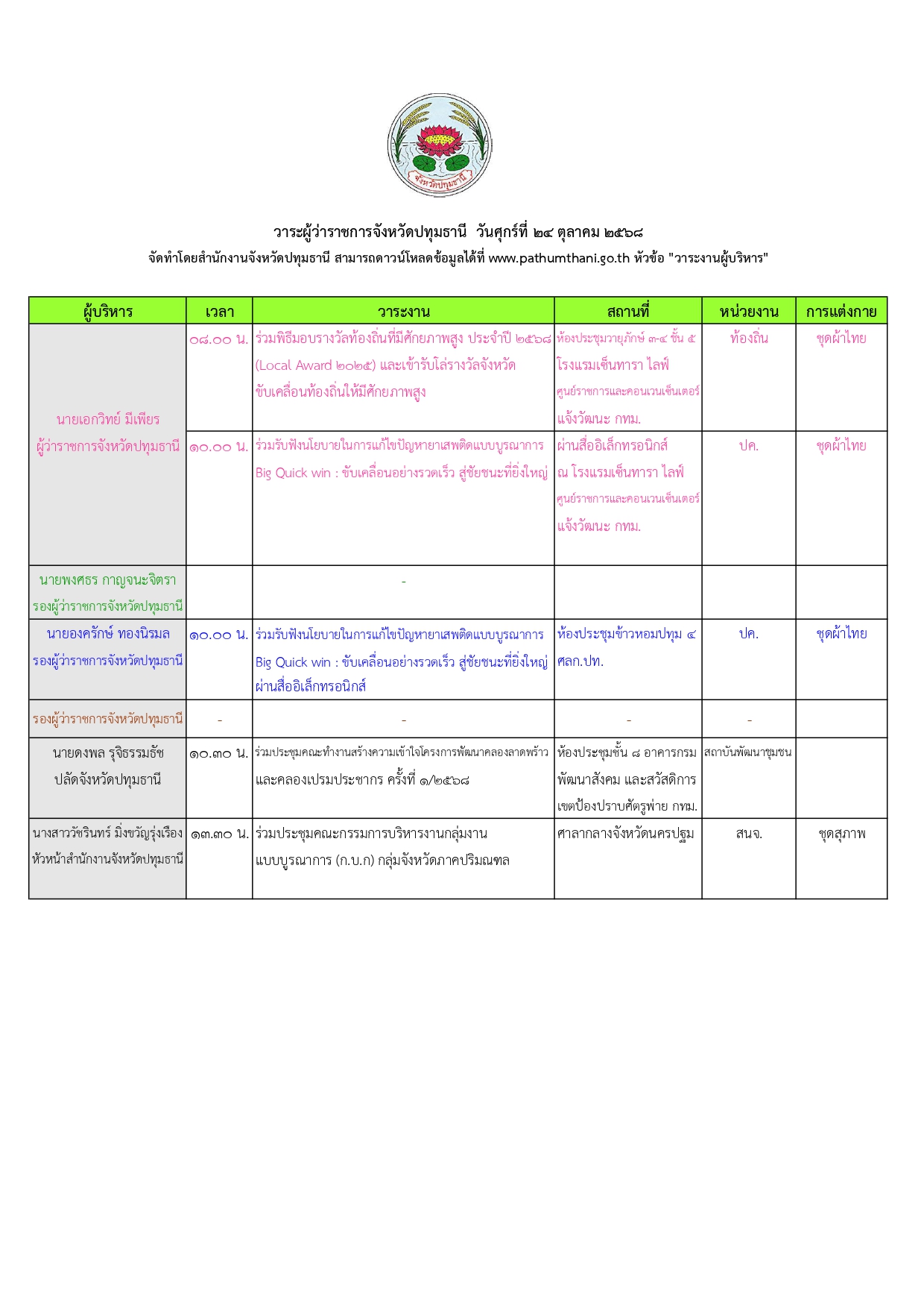 วาระงานผู้บริหารจังหวัดปทุมธานี