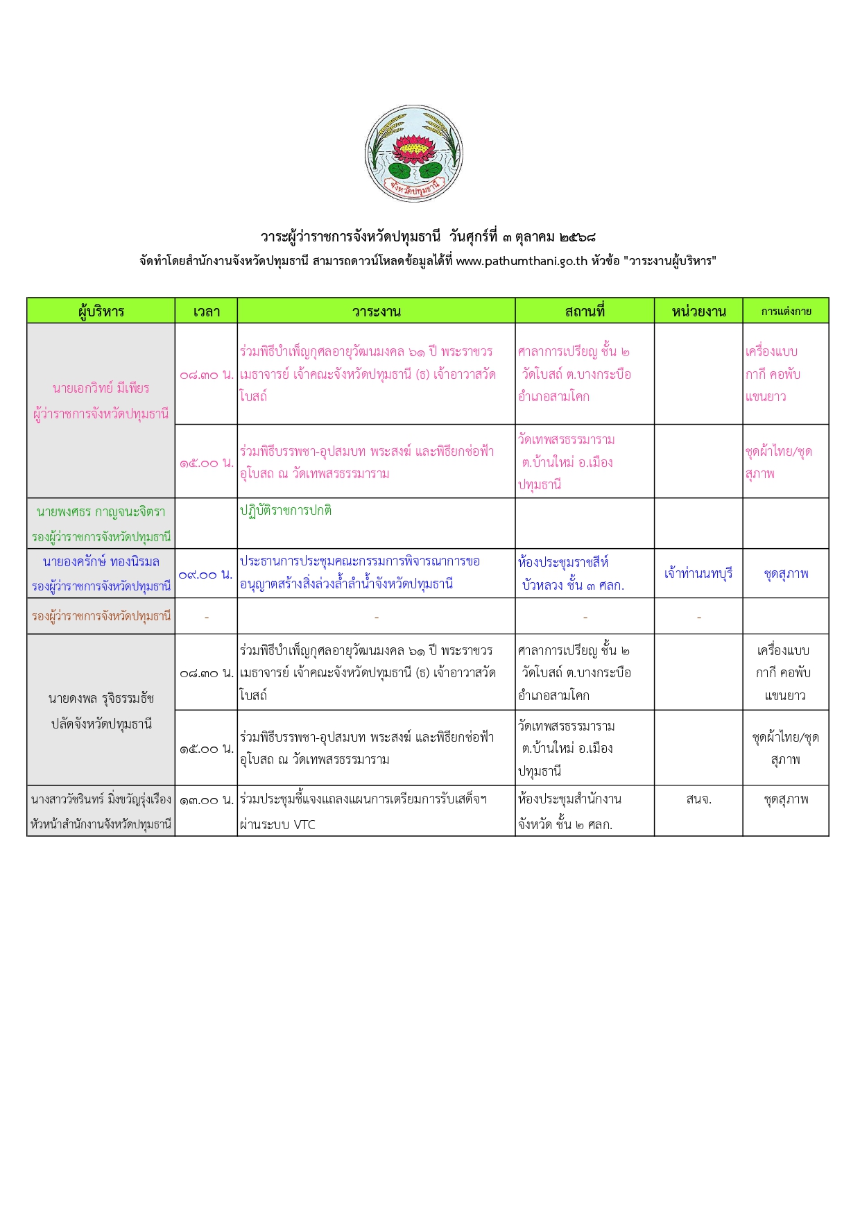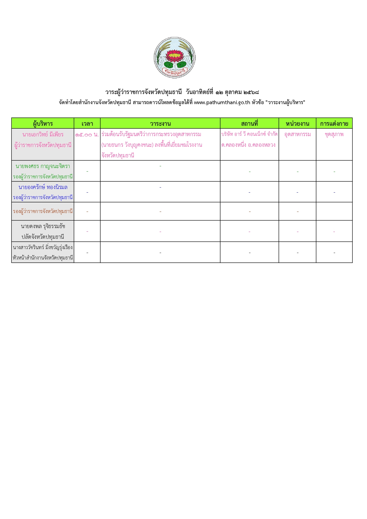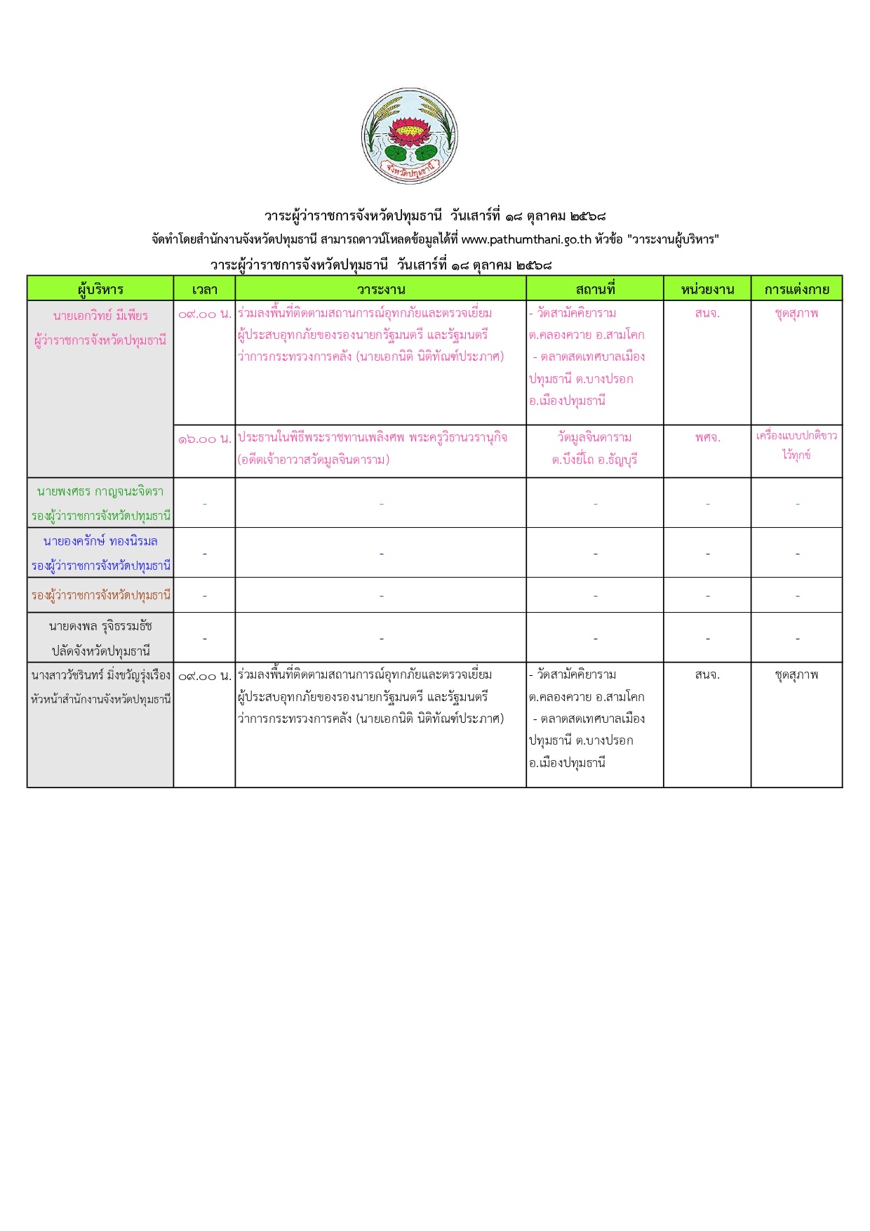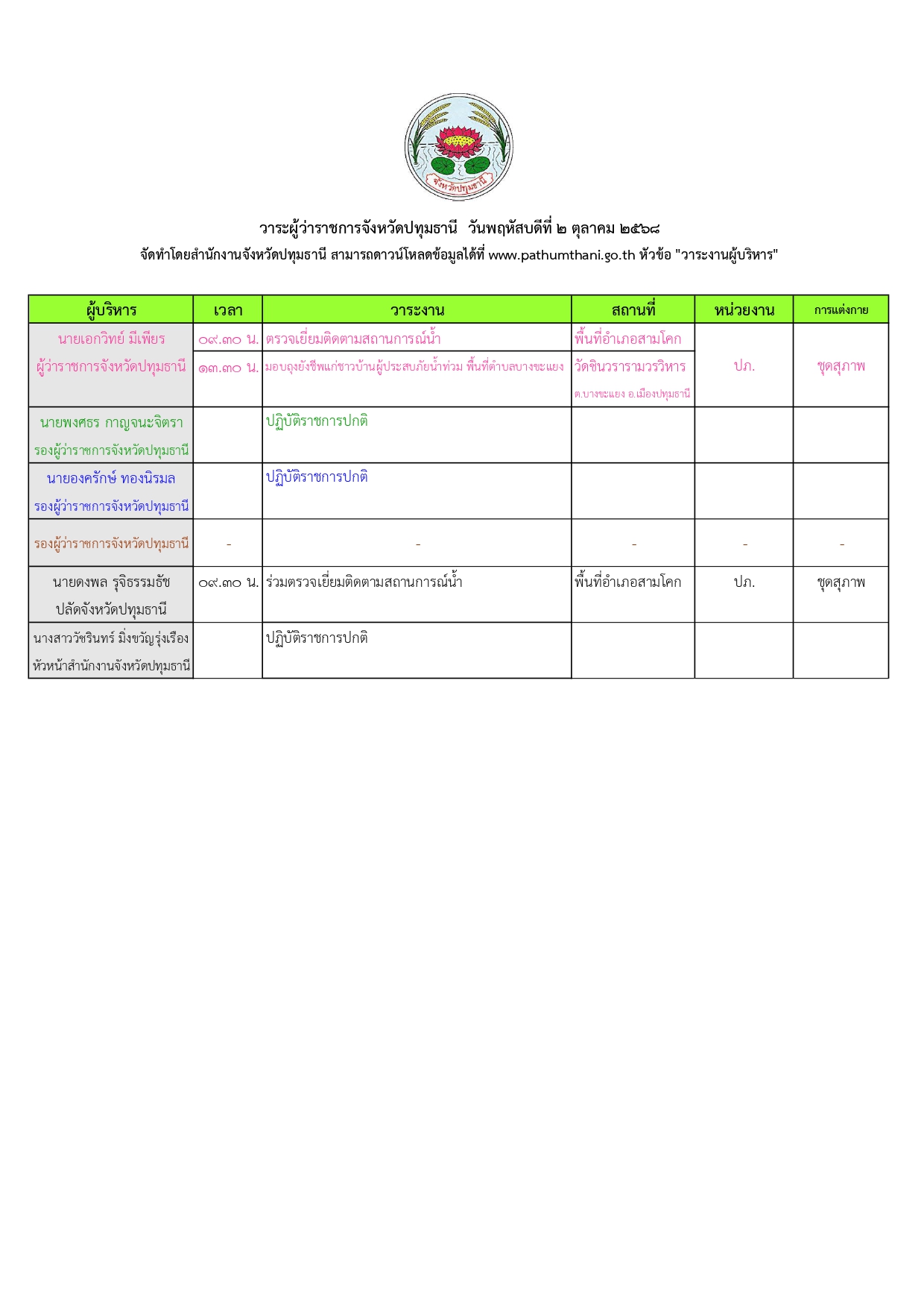 วาระงานผู้บริหารจังหวัดปทุมธานี