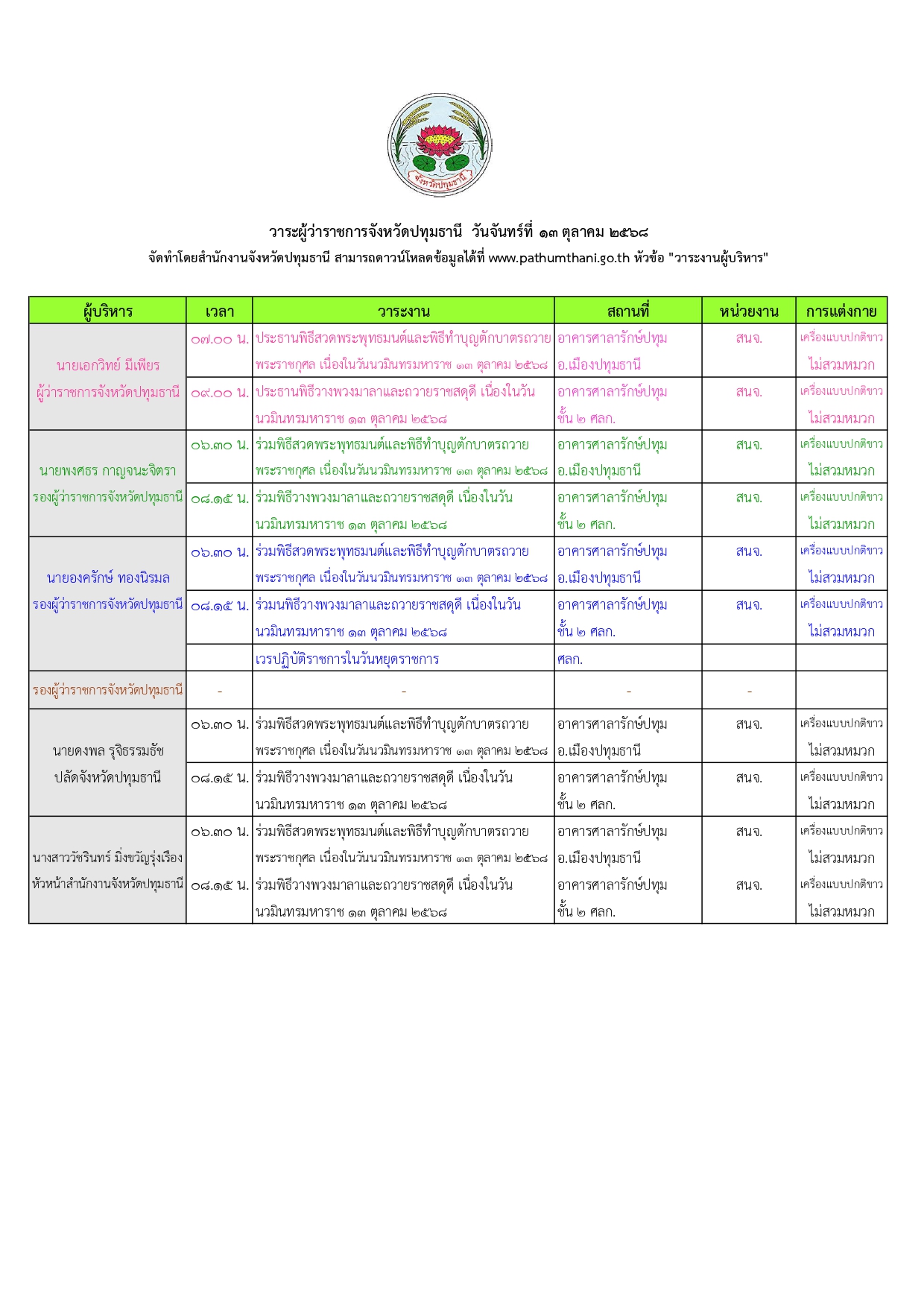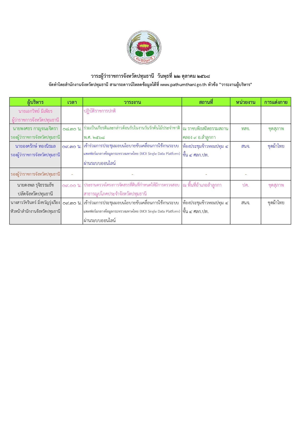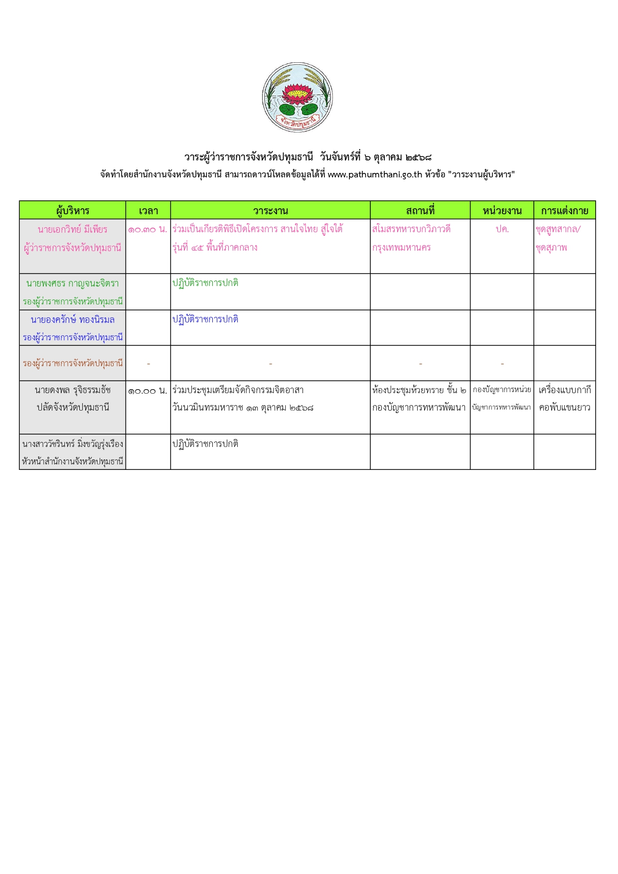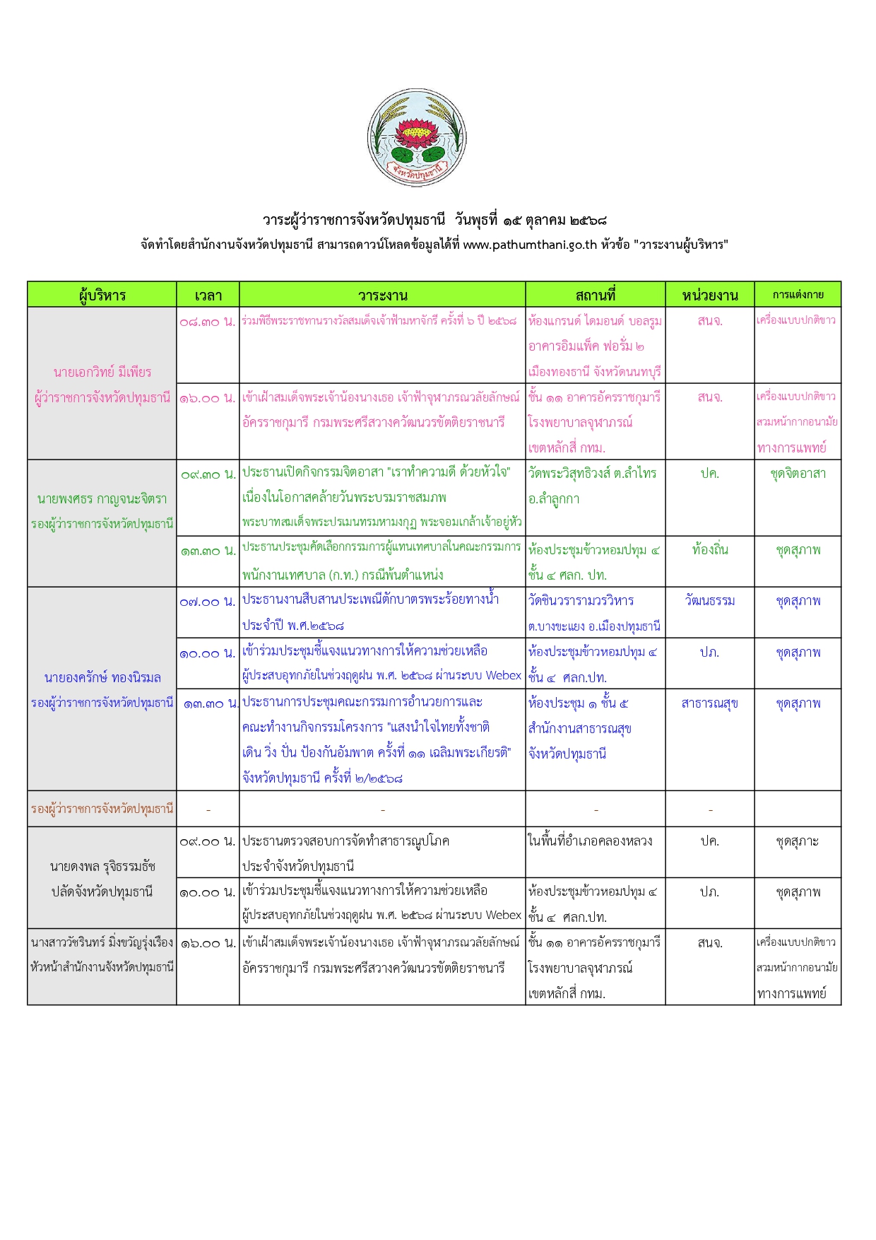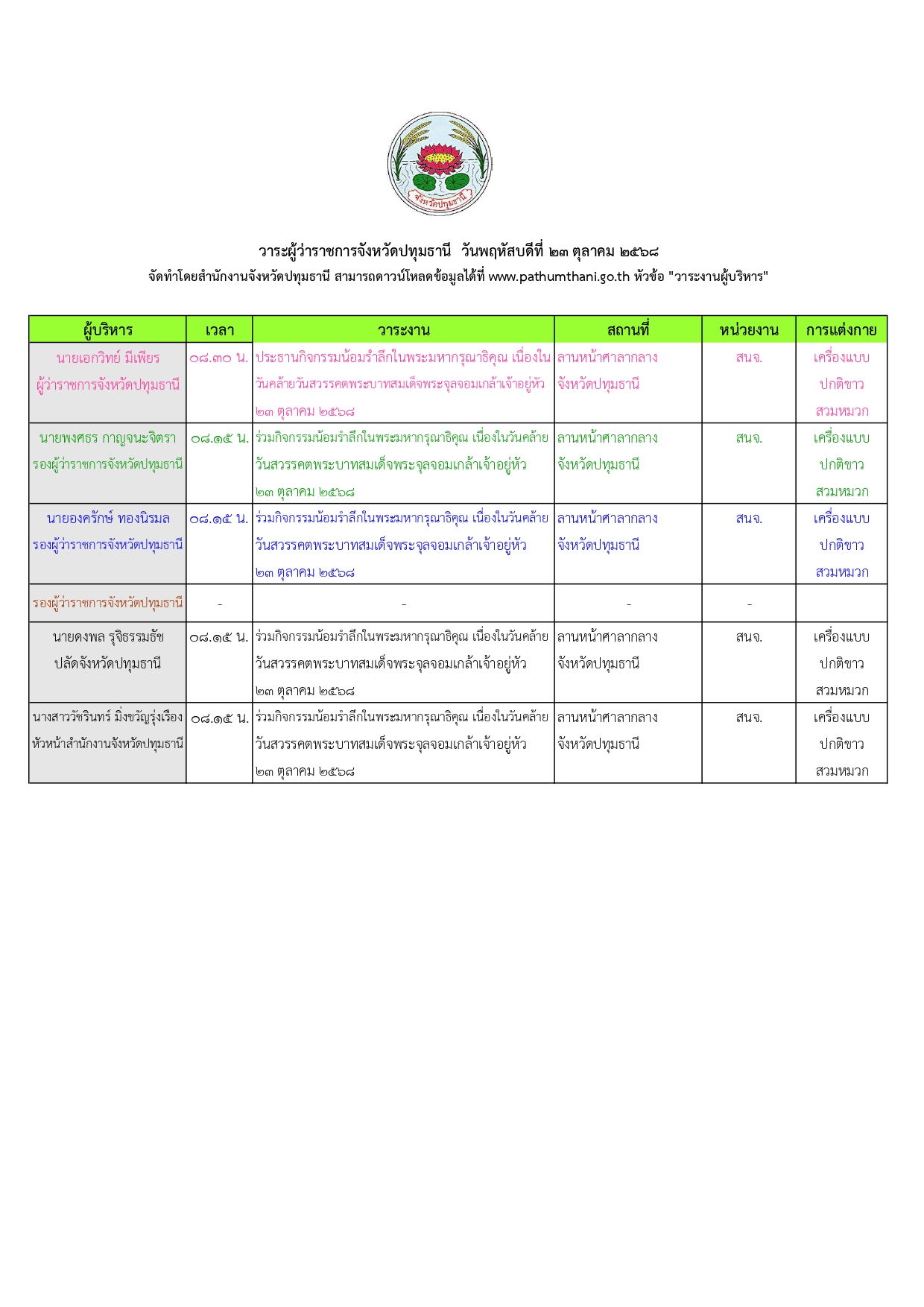 วาระงานผู้บริหารจังหวัดปทุมธานี